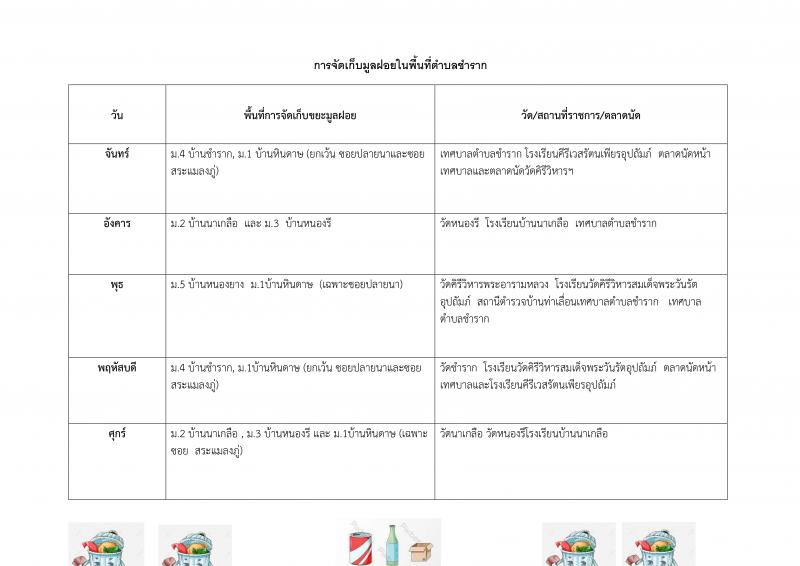 เส้นทางการจัดเก็บมูลฝอยในพื้นที่ตำบลชำราก