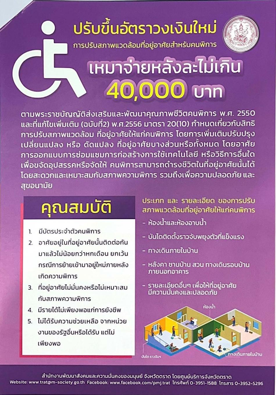 การปรับขึ้นอัตราวงเงินใหม่ ของการปรับสภาพแวดล้อมที่อยู่อาศัยให้แก่คนพิการ [3 กันยายน 2565]