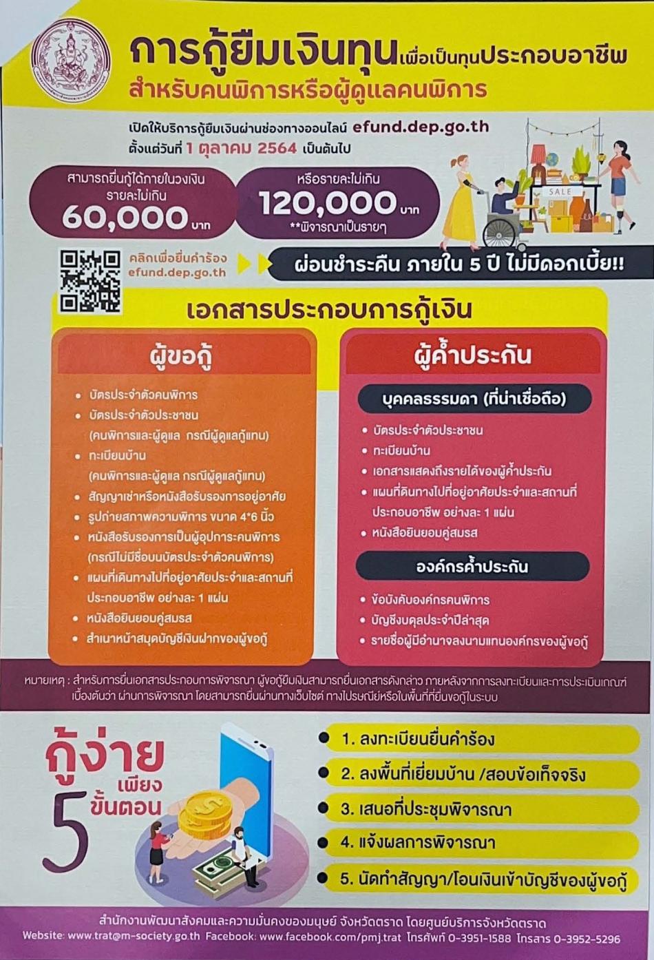 ประชาสัมพันธ์ เรื่อง การขอกู้ยืมเงินทุนเพื่อเป็นทุนประกอบอาชีพสำหรับคนพิการหรือผู้ดูแลคนพิการ [3 กันยายน 2565]