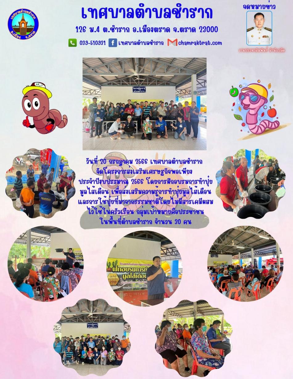 โครงการส่งเสริมเศรษฐกิจพอเพียง ประจำปีงบประมาณ 2566 (ฝึกอบรมการทำปุ๋ยมูลไส้เดือน) [20 กรกฎาคม 2566]
